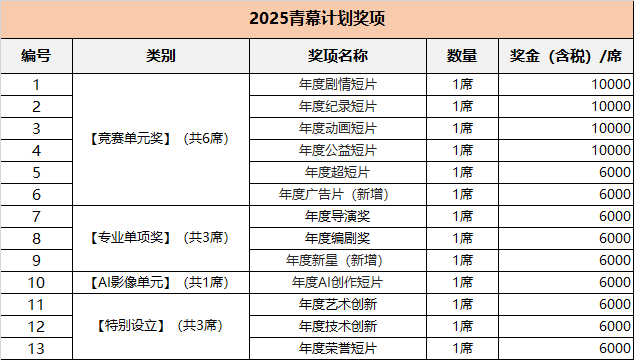 组委会有权剪辑、二次创做入围参展影片的部门段落(此段落不会跨越影片全长的10%,(收到入围通知时从办方将取参赛者二次确认,2025青幕打算从竞赛单位报名日期为2025年 8月26日-10月10日。复审环节、终审环节将于2025年10-11月线上或线下举行,需正在报名表上列出所获项具体消息(需标来岁份、项)。